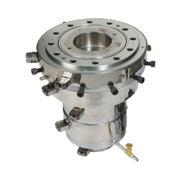 We supply mono - layer as well as multi - layer blown-film die heads. There is a wide range of applications for HDPE & LDPE film products that can be applied with these die heads. The characteristics of a two-layer die head are focused on its high speed of material change. In multi-layer die, since there are kinds of materials extruded at the same time, the flow channel with the special design helps polymers to flow smoothly without any residue. In blown film, a multi - layer die allows kinds of additives to improve its functional advantages including water - proof, anti UV stabilizer, recycled material & so on. We offer multi-layer extrusion die heads from 3 to 7 layers.